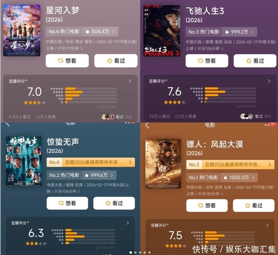 显著低于《镖人》的7.5分及《飞驰人生3》的7.6分。