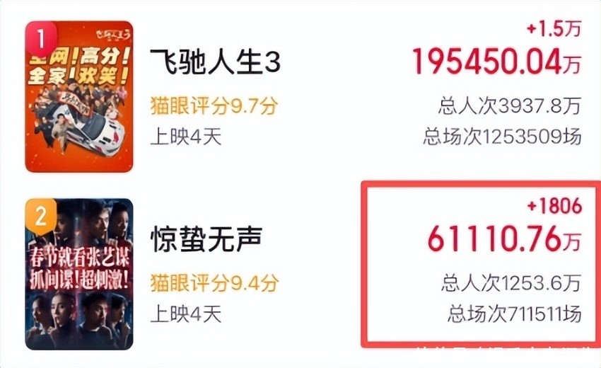 大幅落后于《飞驰人生3》与《惊蛰无声》。