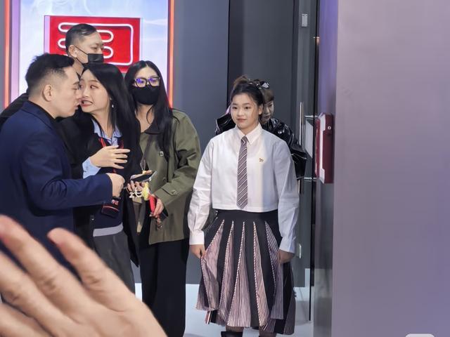 全红婵在众人的簇拥下走过来,她面带笑容、还稍微有点羞涩。其实全红婵经常上节目、面对镜头的次数也不少。