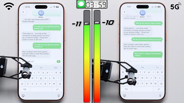 PhoneBuff采用两部全新iPhone 17 Pro Max进行平行测试,一部全程开启WiFi,另一部完全依赖5G移动网络。