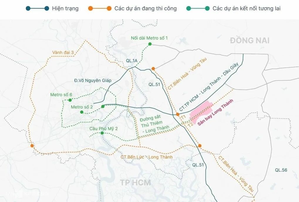在初期阶段,该机场预计主要服务于来自胡志明市及周边地区的乘客出行需求。然而,目前的连接交通系统还有限,主要依赖于胡志明市—隆城—油椰高速公路以及1号和51号国道。